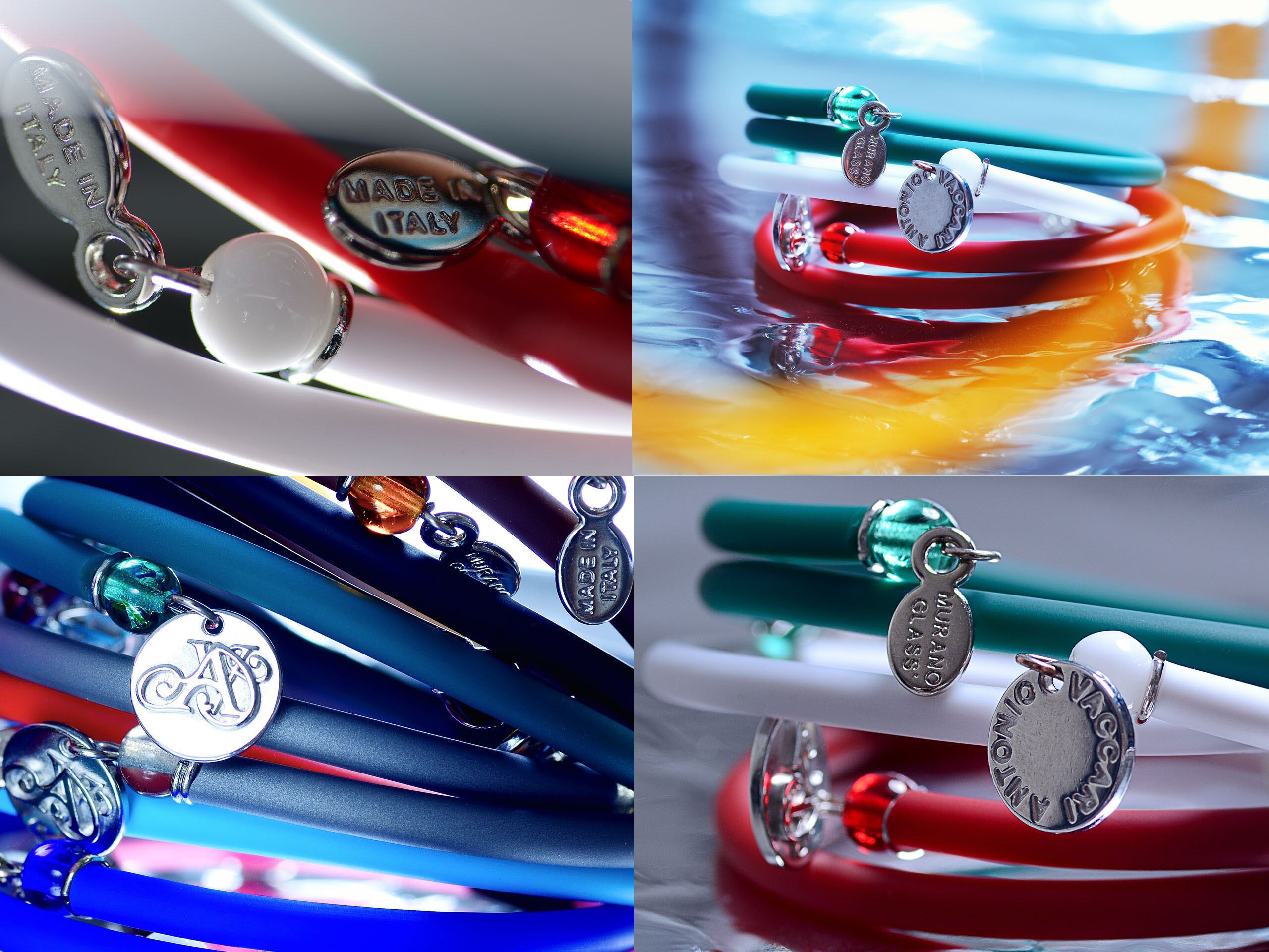ラバー部分とトップのガラスは同色でまとめられています。ポップなカラーリングやあなただけの組合せにより、個性さを演出してくれます。Caucciuモデルをアンクレットとして付ける場合は、先端部分を馴染ませてサイズ調整して下さい。